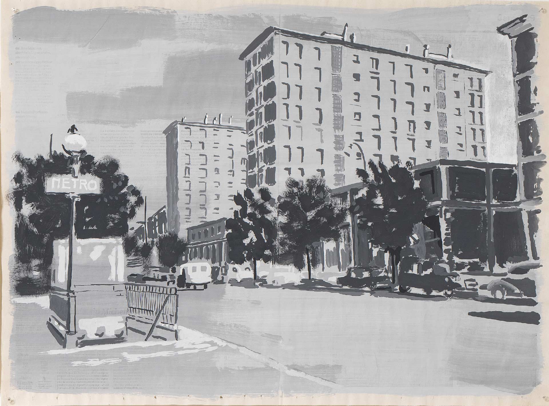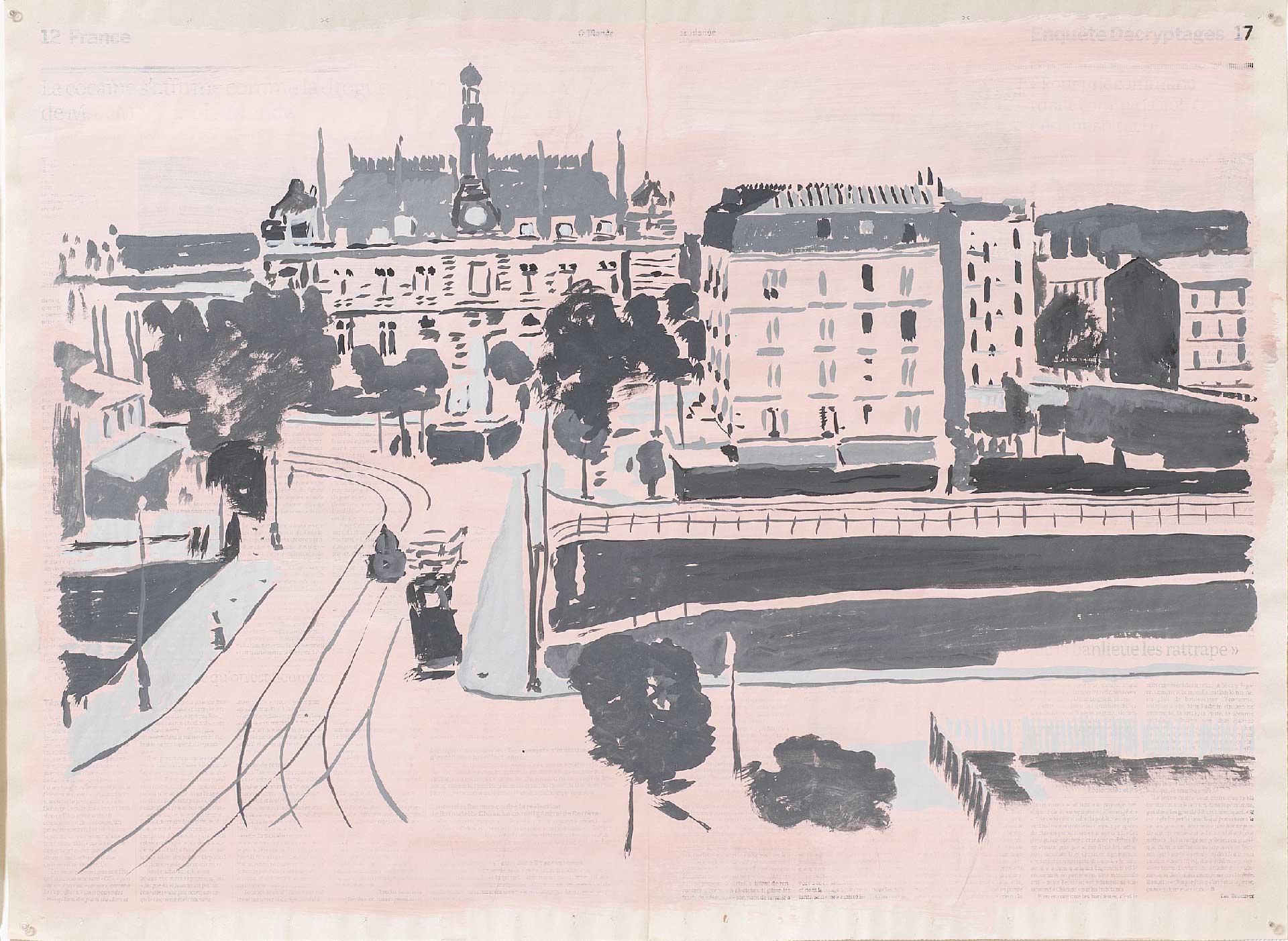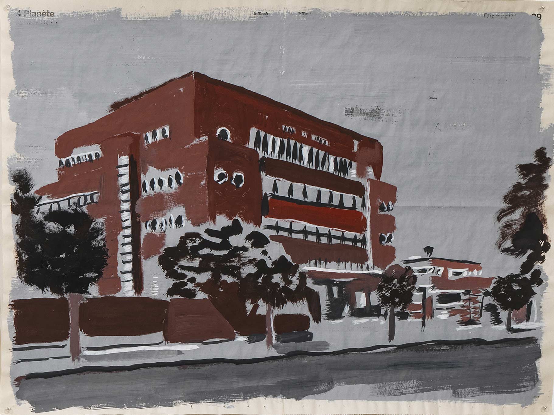 Rue du Congo 18, 2015, gouache sur page de journal, 46x62cm