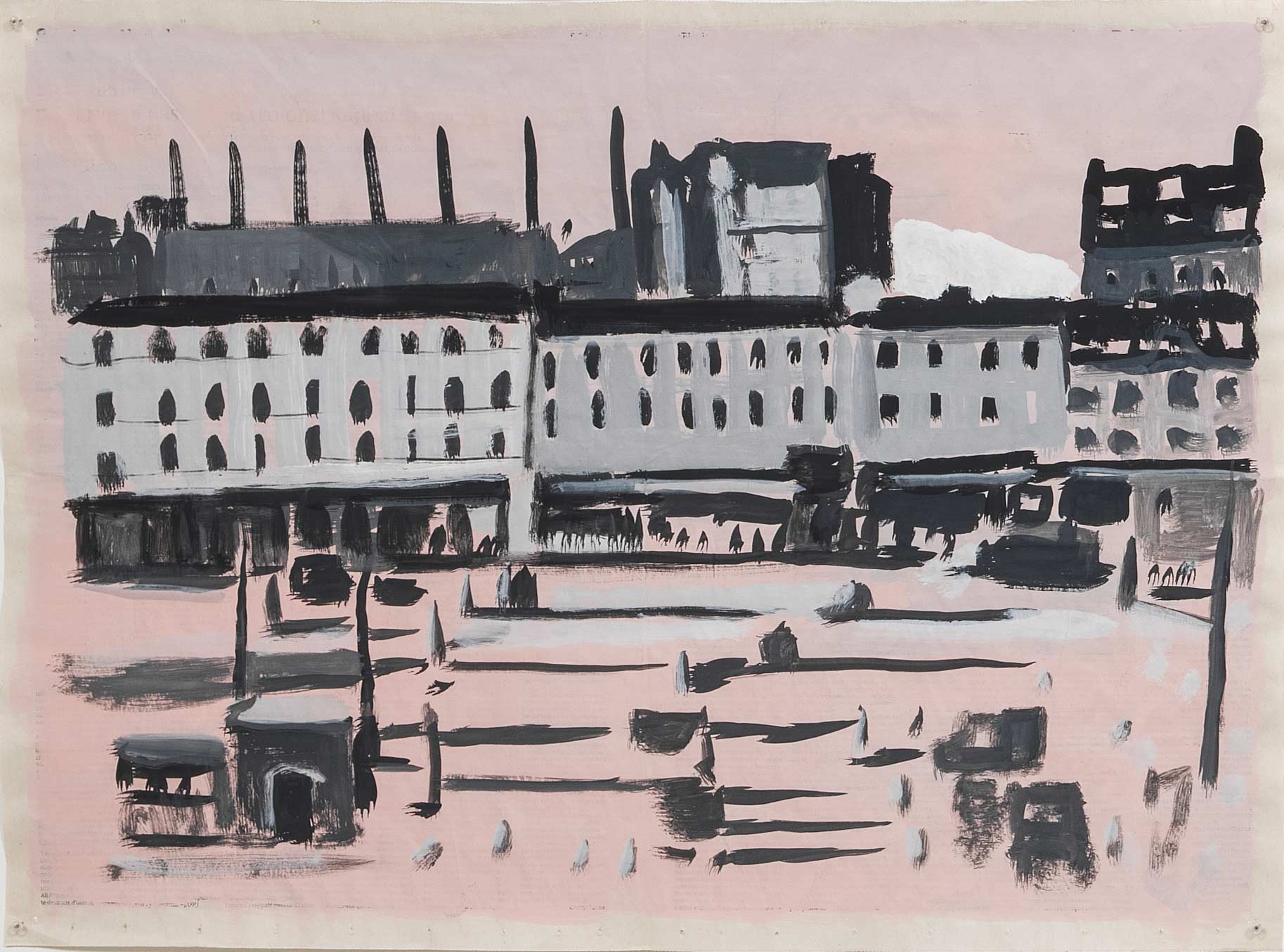 Rue du Congo 21, 2015, gouache sur page de journal, 46x62cm