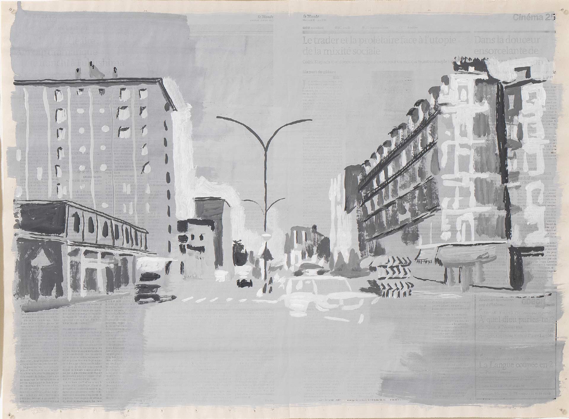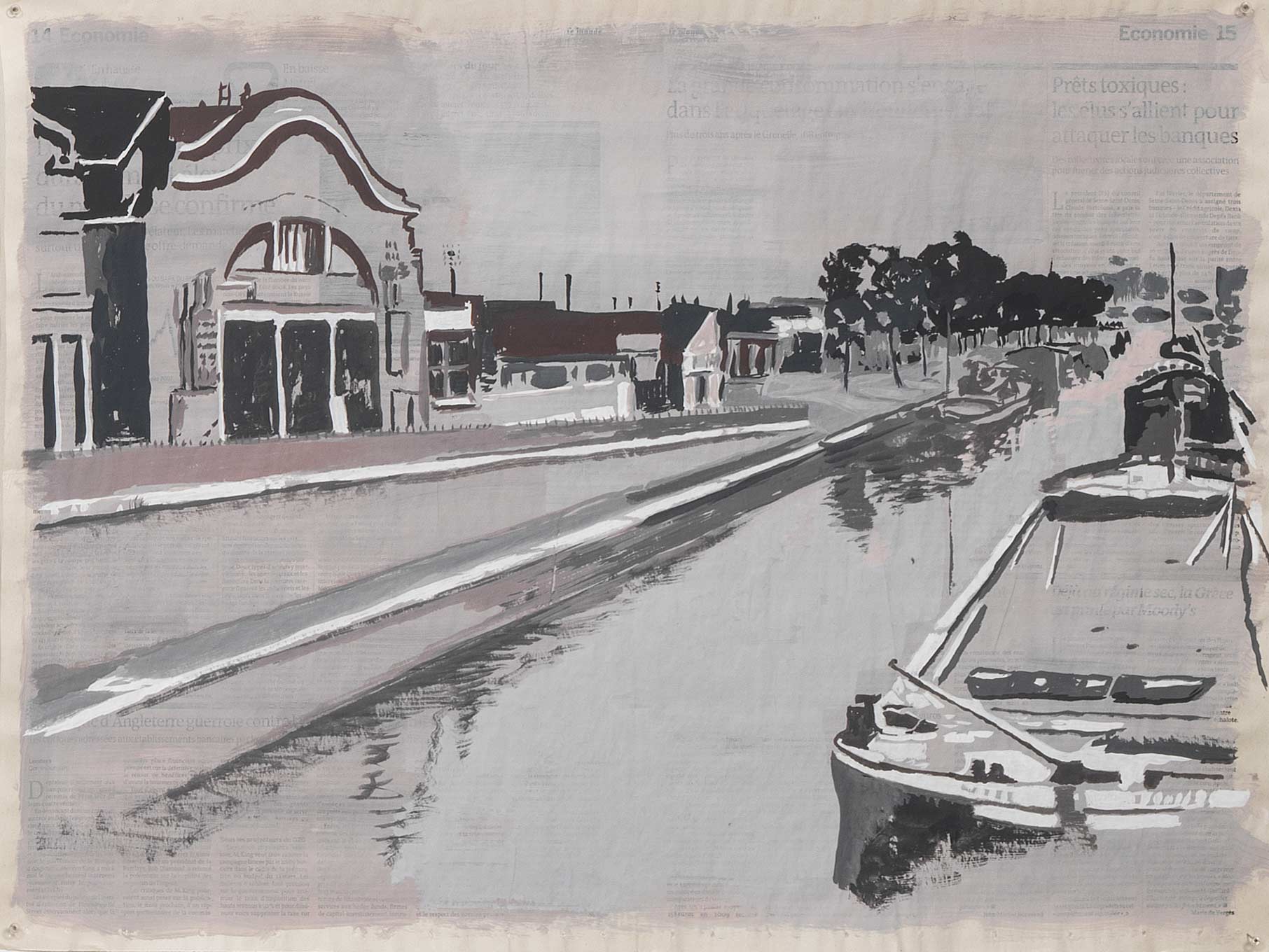 Rue du Congo 1, 2015, gouache sur page de journal, 46x62cm