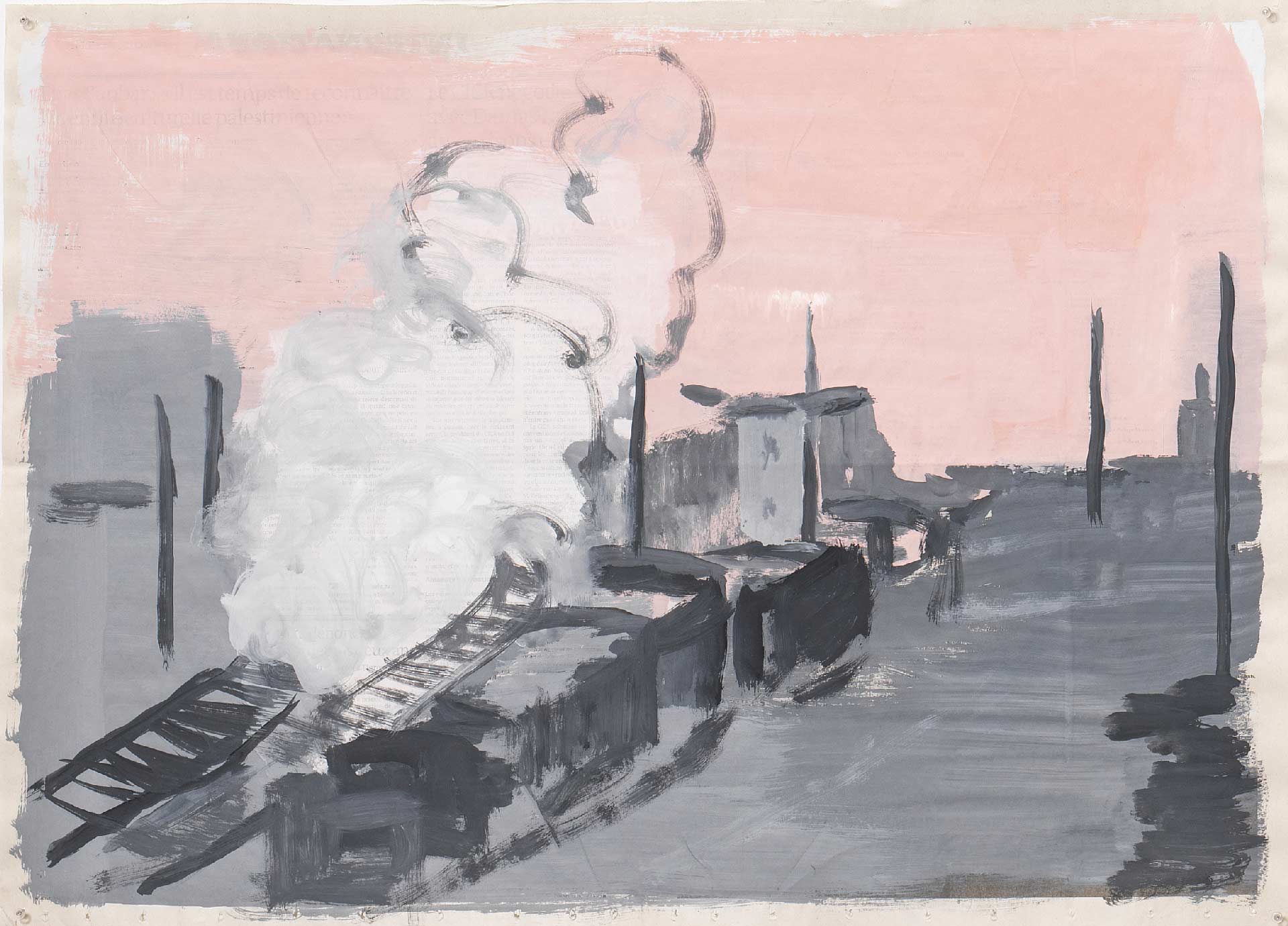 Rue du Congo 19, 2015, gouache sur page de journal, 46x62cm