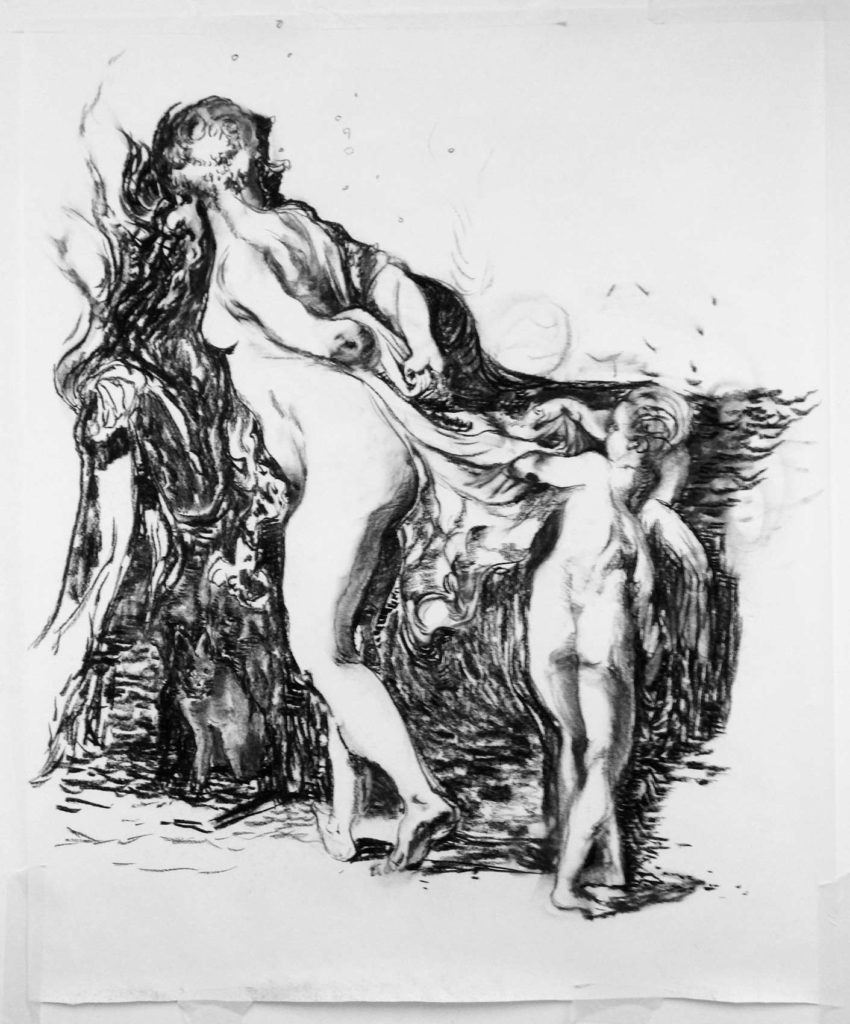 Io, 2016, fusain sur papier, 166x150cm